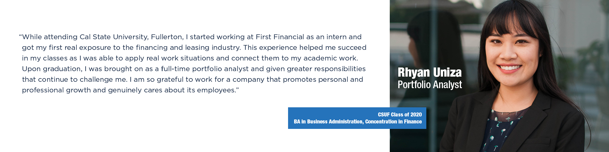 First Financial Equipment Leasing offers a variety of internships for talented students and recent college graduates looking to learn more about leasing and finance. As one of our interns, you will gain the hands-on experience required to succeed not only within our company, but also the finance industry. We place interns in various departments of our company including but not limited to credit & syndication, accounting, sales, operations, and marketing.